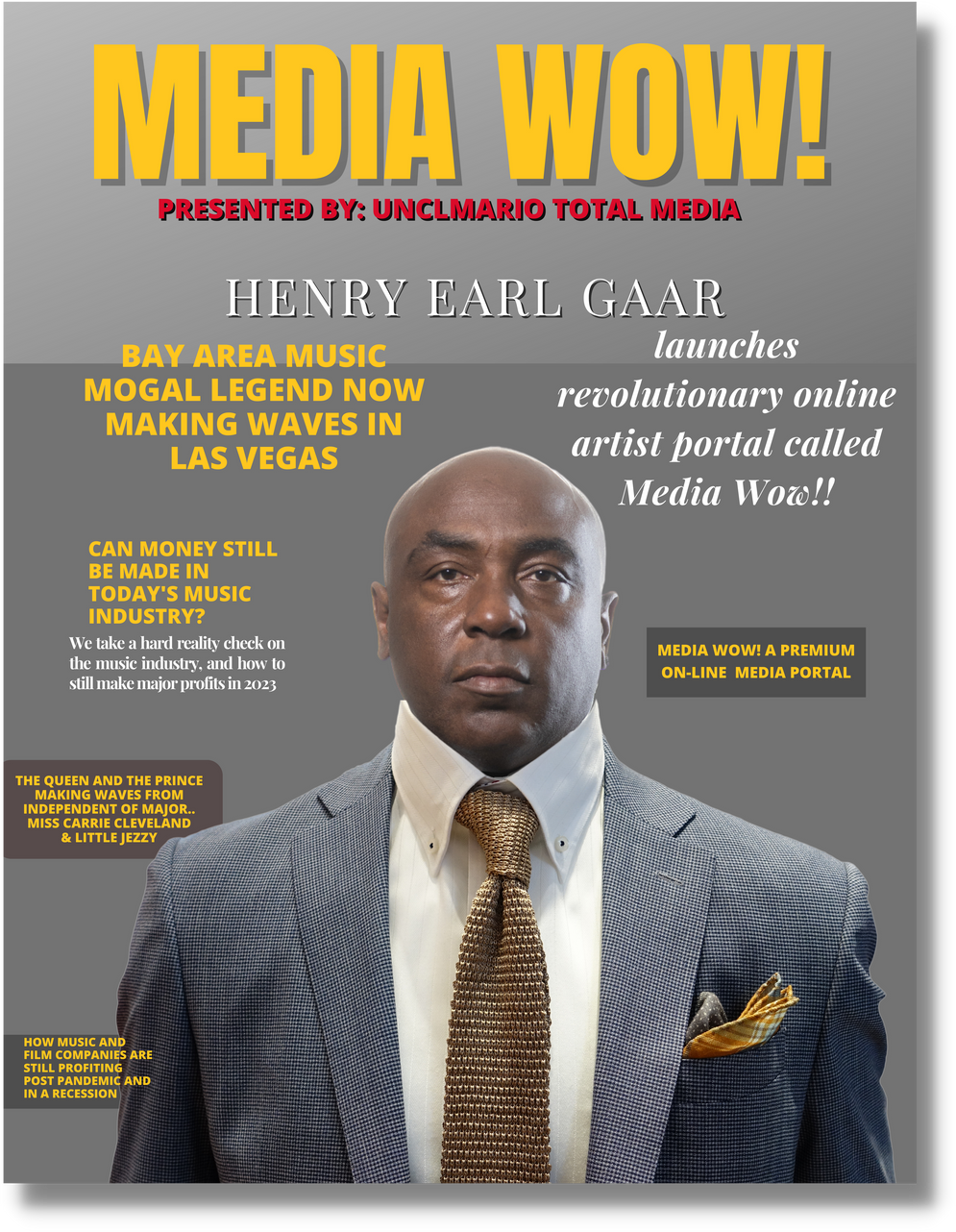 Henry Earl Gaar launched his new multimedia platform, Media Wow! It expands his music legacy into all other forms of media, including filmmaking, podcast creation, graphics, and the metaverse, via his company UnclMario Total Media. Media Wow! is the latest move to address the ever-changing landscape of the music and media scene. New innovative ways must be created to reach the public fan base that has changed and is oversaturated with anyone with a computer or cell phone. Media Wow! utilizes cooperative marketing to share each participant's social media platforms, effectively exponentially growing each participant's reach from an individual reach to a collective number reach. This online portal, soon to also have a physical quarterly magazine, will reach millions. It is a force that raises all ships by making all participants' tides rise. Inquire about how this new method of cooperative showcase marketing can help you reach your media outreach goals.